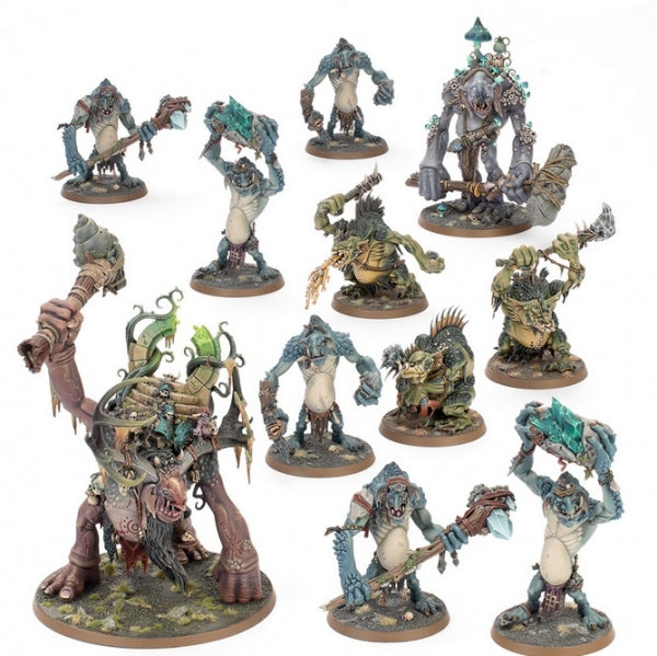 The Gloomspite Gitz kick things off in the Mortal Realms with a thundering troupe of troggoths, led by Trugg, the Troggoth King. His royal entourage consists of one Dankhold Troggoth – which can be assembled as a Troggboss instead – three Fellwater Troggoths and six Rockgut Troggoths, all of which are extremely durable and terrifying to face in combat.