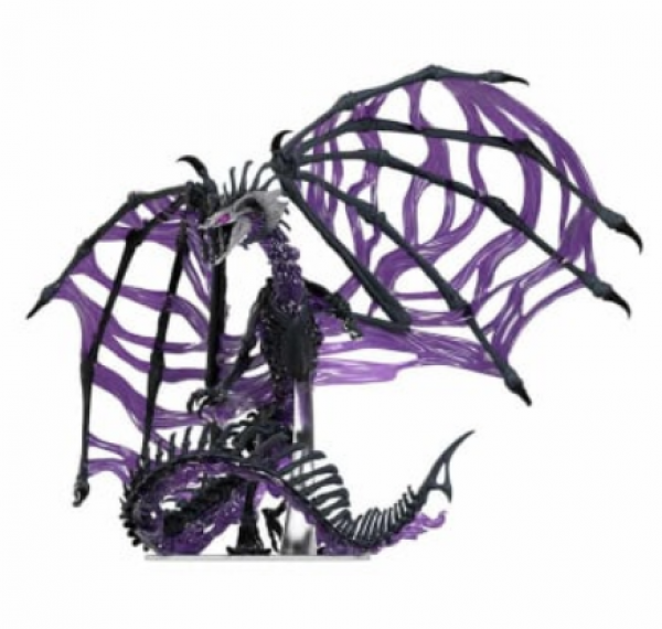 The D&D Icons of the Realms: Black Dracolich Boxed Miniature is a Gargantuan-sized prepainted Dungeons & Dragons miniature on a 100mm clear plastic base. Utilizing haunting purple translucent materials and standing 10 inches tall, this undead dragon mini makes for a great campaign antagonist or frightening addition to your collection.