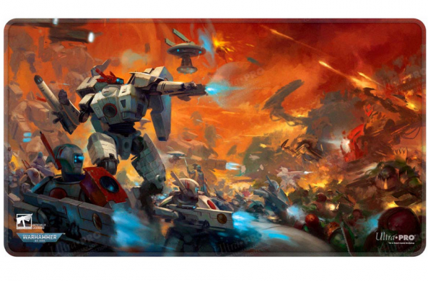 “In the grim darkness of the far future there is only war”, so prepare for battle with tabletop accessories for Warhammer 40,000! This playmat features premium stitched edges and full-color cover artwork from the 10th Edition T’au Empire Codex. Each playmat is made with a soft fabric top to reduce damage to cards, and the non-slip rubber backing keeps the playmat from shifting during use. With dimensions of approximately 24 in. x 13.5 in., a playmat also makes an excellent oversize mousepad for home or office.