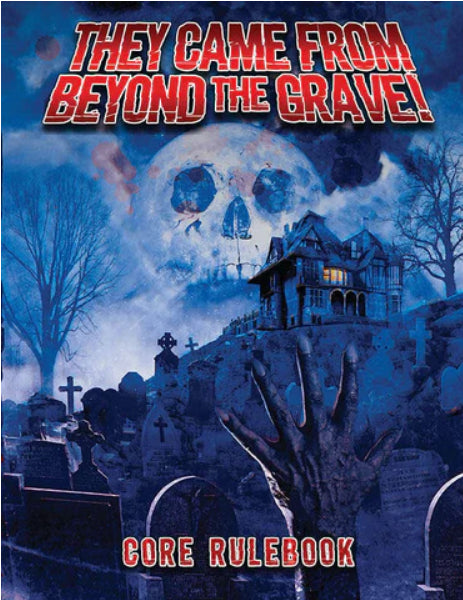 They Came from Beyond the Grave! is a dramatic, hammy, and horrifying tabletop roleplaying game encompassing the shock, terror, eroticism, and humor of 1970s horror. This game allows you to play with all the magnificent content from the movies of Hammer, Amicus, and Roger Corman, and promises the fun and thrills of the horror movie genre! In They Came from Beyond the Grave!, you play humans faced with the horrors of the supernatural. You’ll find yourself pitted against vampires, werewolves, ghosts, and constructed critters, along with demons, slashers, and THE DEVIL HIMSELF. Adventures range from the one-shot exploration of a haunted house, to the multi-era play across the 19th century and 1970s. They Came from Beyond the Grave! contains a mix of serious threat, unmitigated ham, and nonsensical farce. We never tell you what is amusing and what is not, but we do provide the tools to make a seriously fun game incorporating all the elements of 1970s horror movies. This game provides rules for funny quips and amusing cinematics for incorporation in a story, along with dozens of special powers and story devices. They Came from Beyond the Grave! uses the Storypath System, provided in full in the pages of this book!